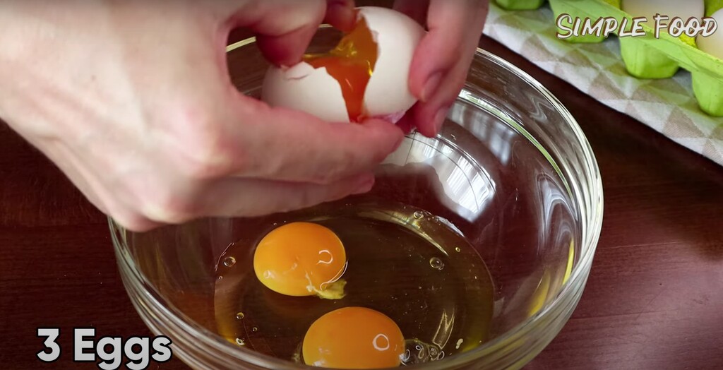 Между прочим, для этого рецепта точных пропорций не нужно, все зависит от ваших предпочтений. Главное, выбирайте плотные помидоры, но спелые мясистые, тогда блюдо получится просто фантастически вкусным. Теперь в отдельную емкость разбиваем яйца.