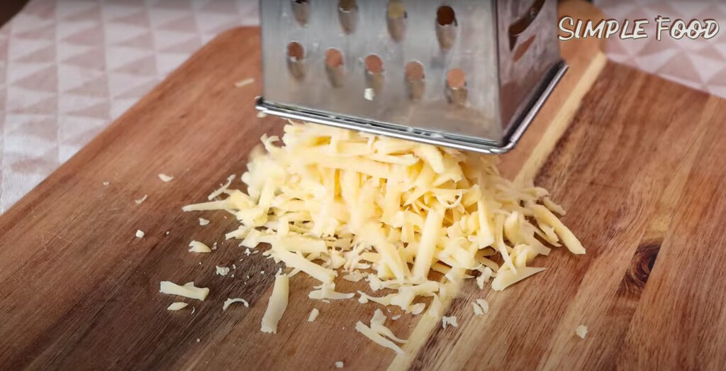 Помидоры лучше брать не крупные, а среднего размера. Так с ними будет удобнее работать и блюдо получится красивее в готовом виде. Еще нам нужен будет сыр, грамм 50 будет достаточно. Хотя, если вы такой же любитель сыра как и я, то можно и больше. Кстати, берите тот сыр, который хорошо плавиться. Измельчаем его на крупной терке.