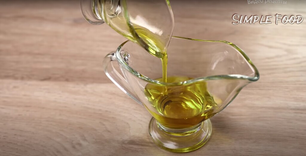 И осталось только приготовить фантастически вкусную заправку. Для этого берем оливковое масло и выливаем в соусник.