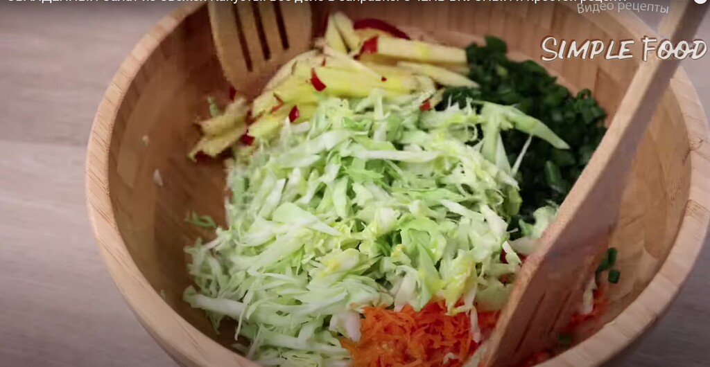 Салат с капустой и яблоком готов. Все получается стремительно и просто. Главное — это угадать с количеством салата, поскольку он съедается моментально! Смачного!