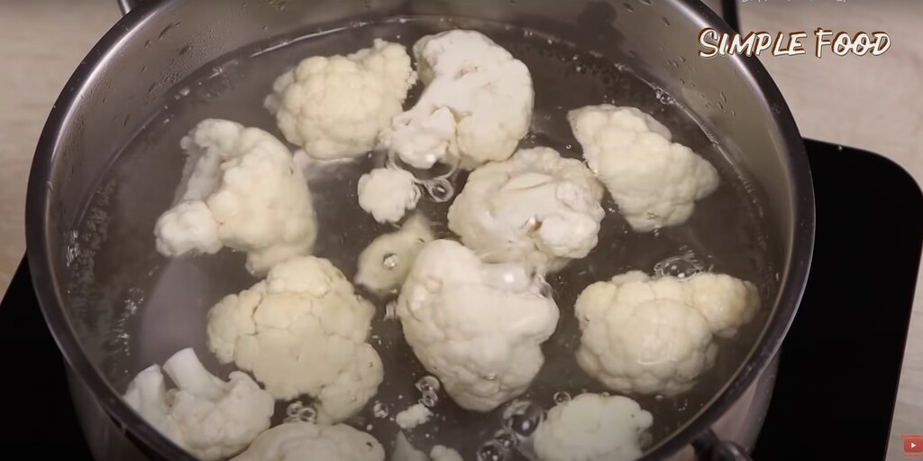 Ставлю кастрюлю на огонь и наливаю воду, добавляю соль и довожу воду до кипения. Как только вода начнет закипать, выкладываю соцветия и варю пять минут.