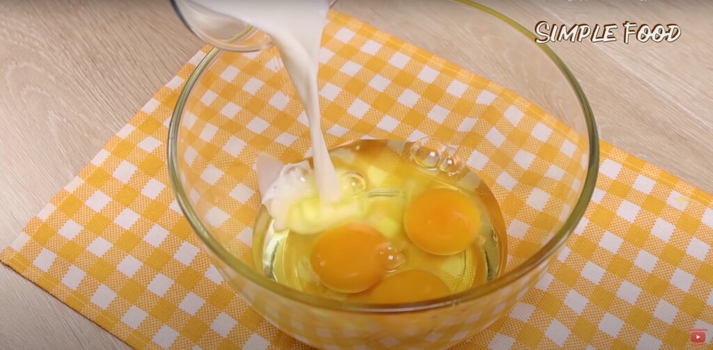 Капуста, между прочим, к этому моменту уже готова. Вынимаю ее из воды и выкладываю на тарелочку. В глубокую миску разбиваю яйца. Выливаю молоко, добавляю соль и специи.